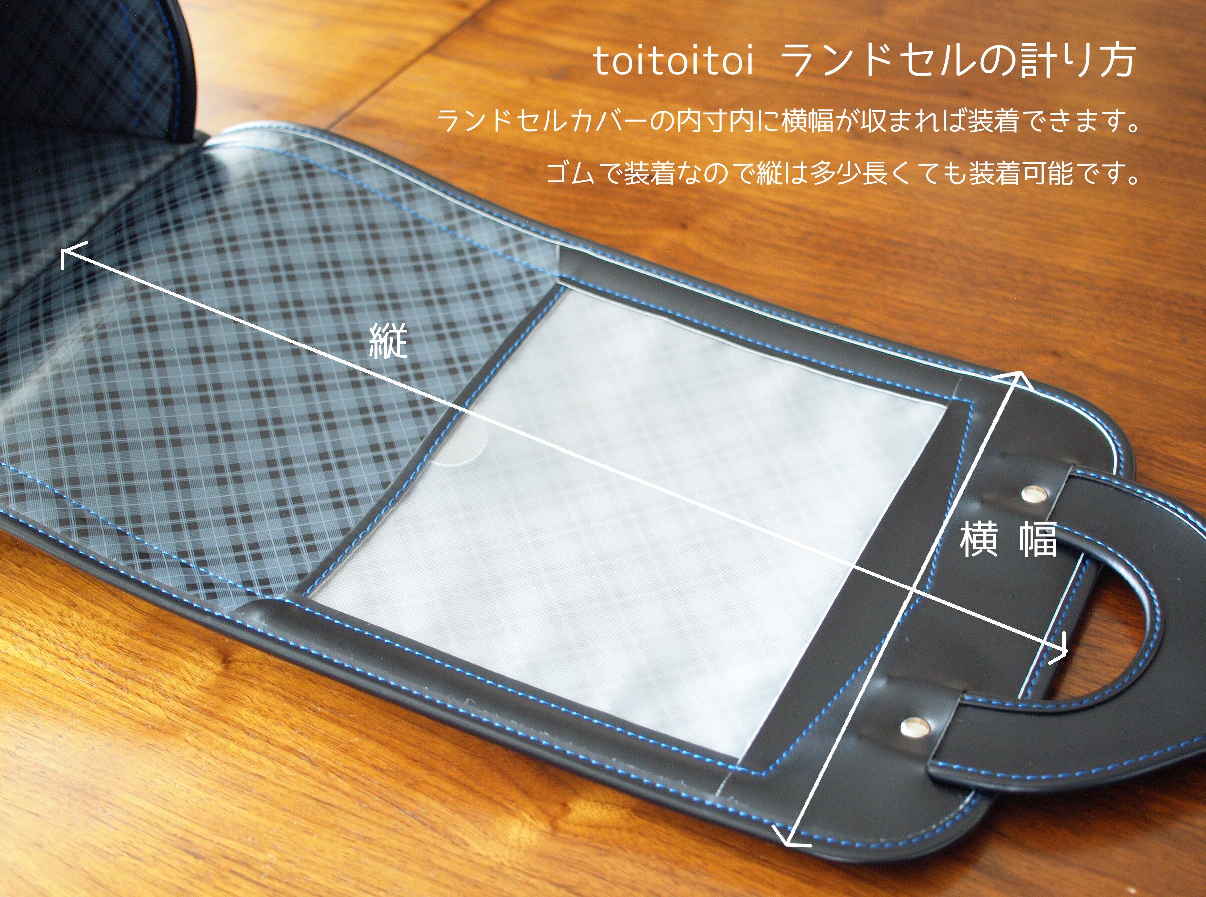 画像に写っているランドセルの蓋の外寸は約45.5cm×25.8cmとなります。