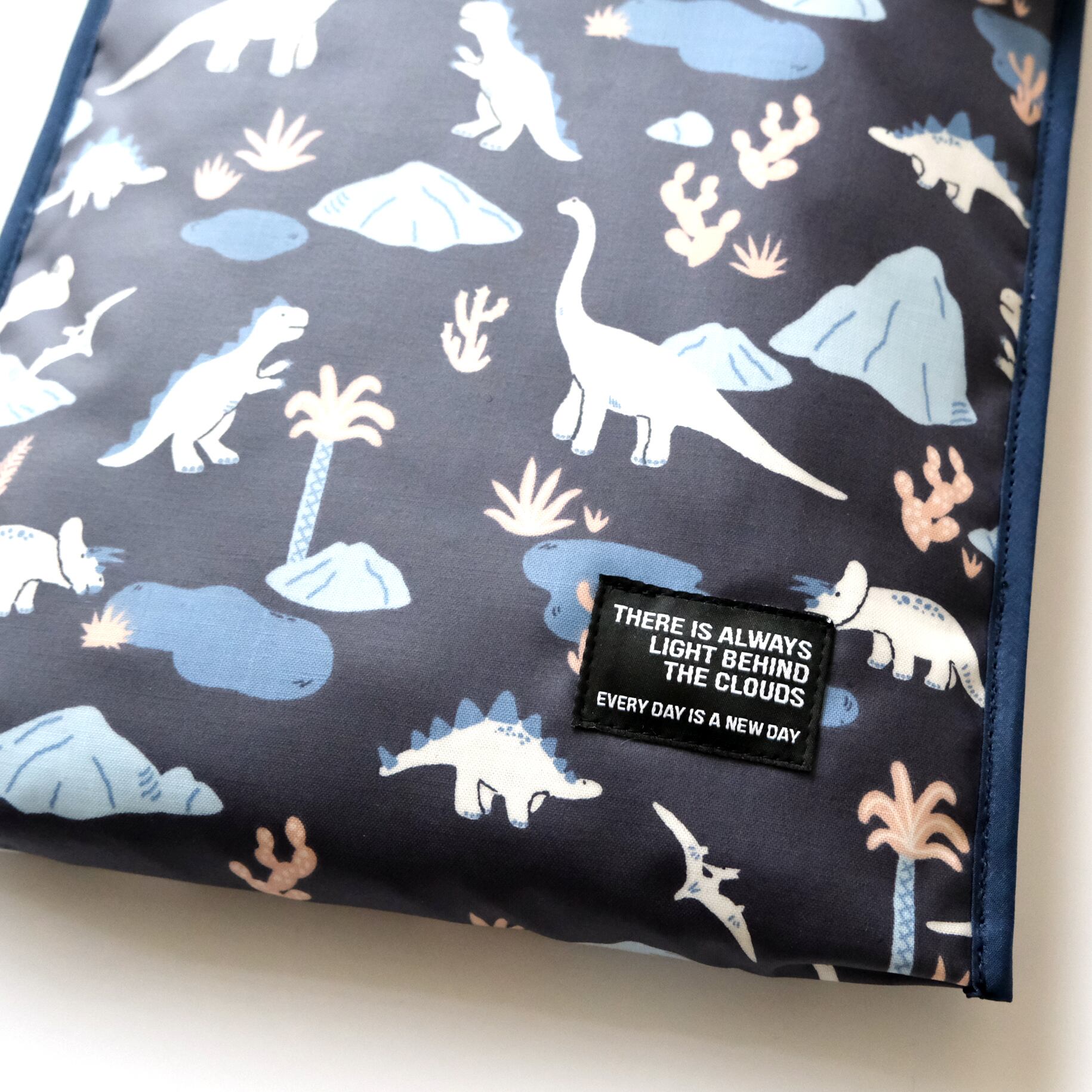 ◆ダイナソー柄のラミネートとナイロンキルトで作ったiPadバッグ◆iPadケース◆アイパッドバッグ◆タブレットバッグ◆タブレットケース◆chromebookバッグ