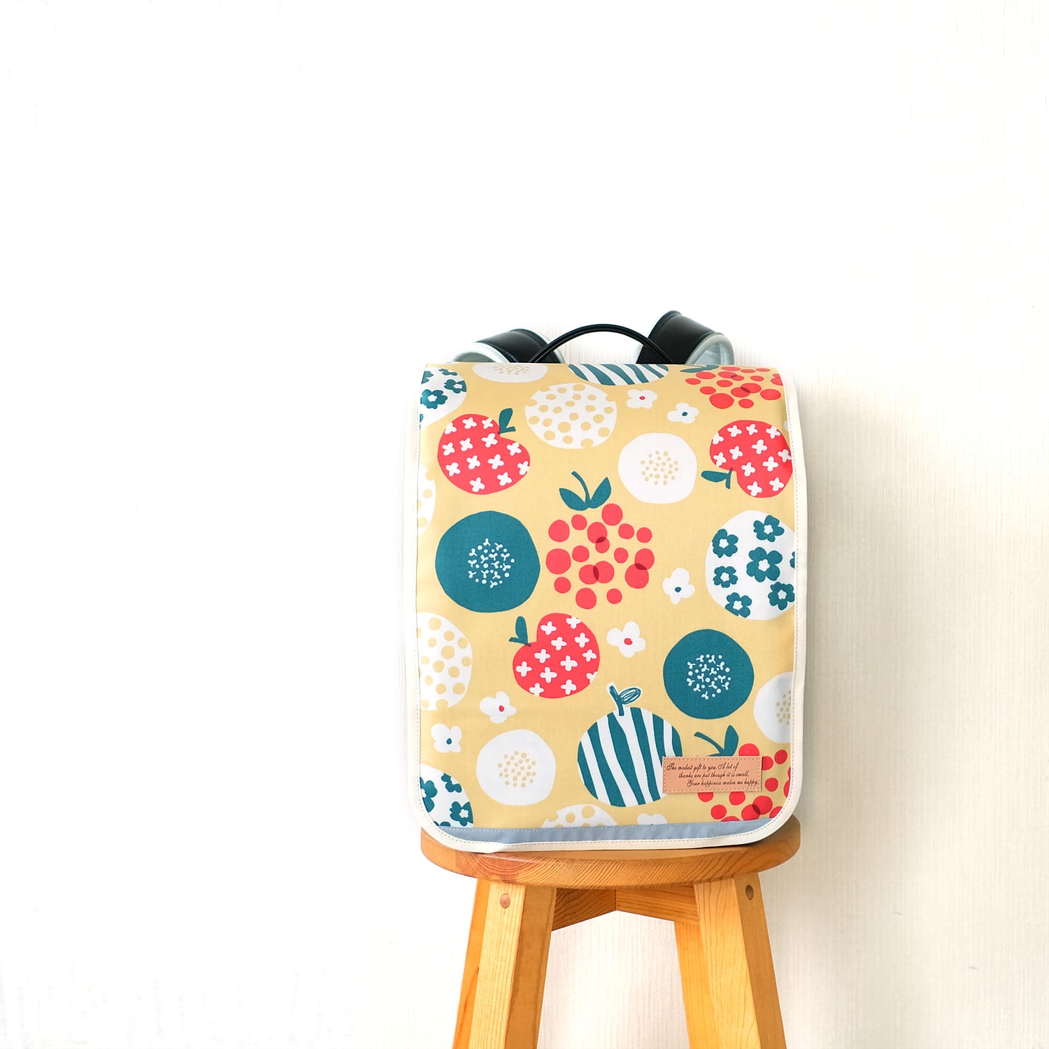 こちらは北欧風のフルーツ×フラワー柄の可愛らしいラミネート生地を使用して製作しました。